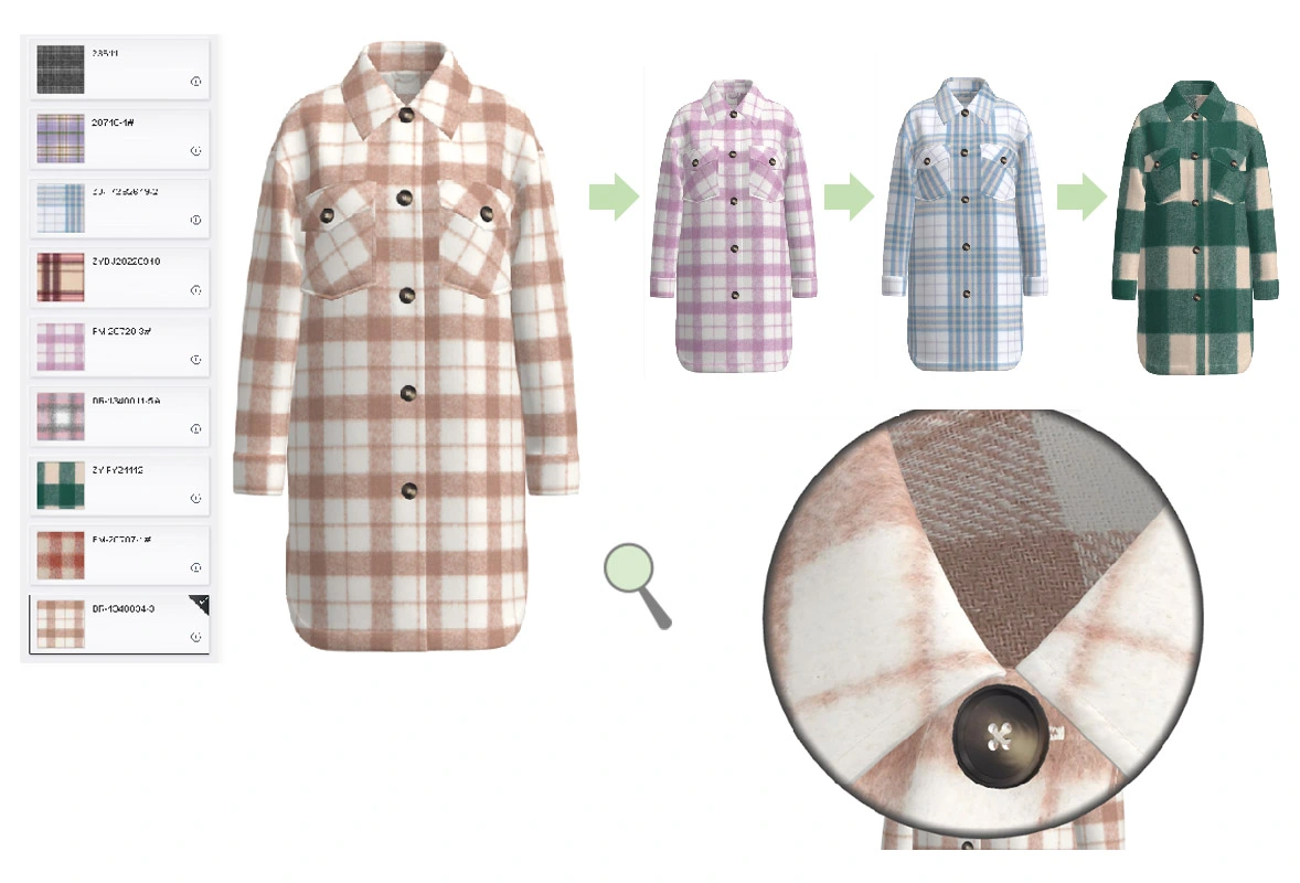 The 3D designer teams in China and Bangladesh have reduced the sampling process through the 3D system, allowing two-dimensional paper patterns to be displayed to you through three-dimensional effects. You can make your choice online, change fabric intelligently, and make decisions quickly.